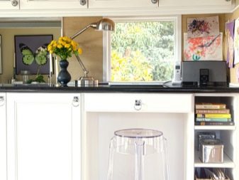 Some designs become decoration of the apartment. Such models come with a small retractable drawer under the seat and two shelves.They are suitable not only for the kitchen, but also as an attribute of a school corner or a study.