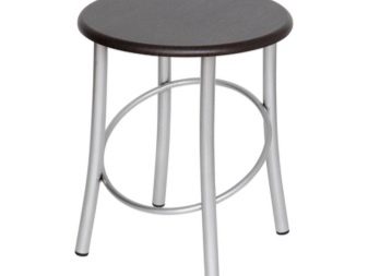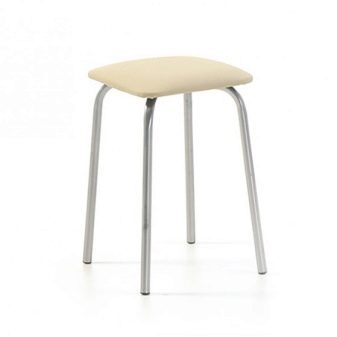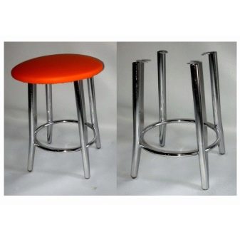 Designs differ in different materials of manufacture. They are made of MDF, laminated chipboard, plastic, metal and wood. Today, often make combined designs. For example, steel-frame stools and canvas cushions.