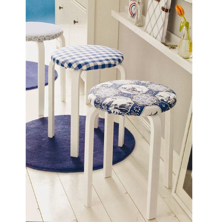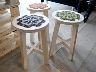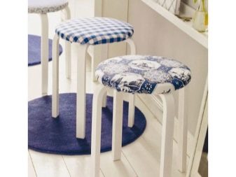 Coloring should like households. Even a mood can depend on it. Stools can be white, sandy, in tone of a tree, red, blue. Many craftsmen, updating existing stools, paint them in different colors and all sorts of patterns. The most harmonious look shades that are already available in the interior.