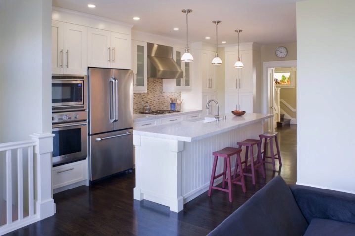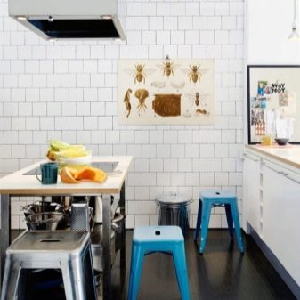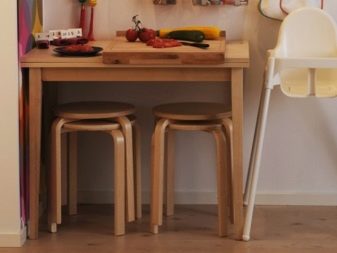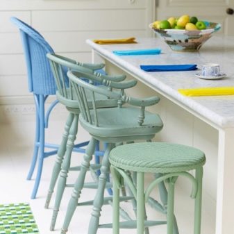 - Height. When purchasing stools for a small kitchen, you need to select options so that they can be moved under the countertop, freeing up a useful area.