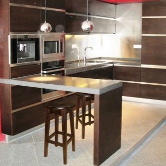 - Material. Before you choose one or another model, you need to pay attention to the coincidence of the style of the main furniture with the planned purchase. Metal structures are not suitable for a kitchen group of wood.
