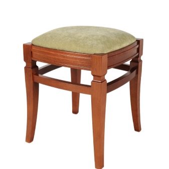 In fact, the stools have a simple construction with a seat and legs. For greater strength, manufacturers are used in the assembly of ryg and prokhozhki. The legs of the stool are the usual straight, carved, twisted, solid, crossed.