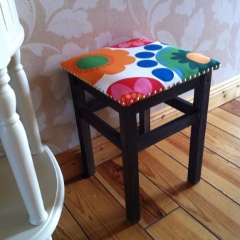 Step-stools came into vogue relatively recently.Products of this group are quite popular. They are mobile, differ in the small size and weight, are carried out in different shades. They can be decorated with fabric, varnish, paints or make them a removable cover.