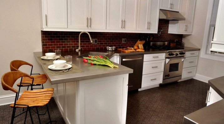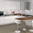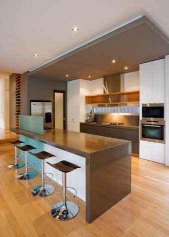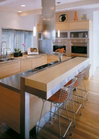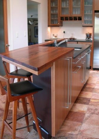 There are options when the rack is connected to the worktop a few centimeters below its level and mounted without additional supports. This is the so-called bar with an appendage. This model is most convenient for the kitchen, which can fit a large number of people, that is, in a large room.