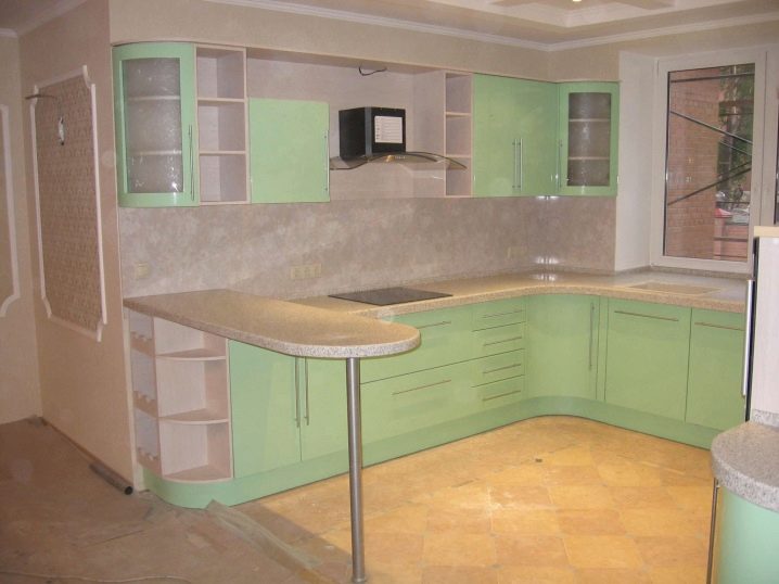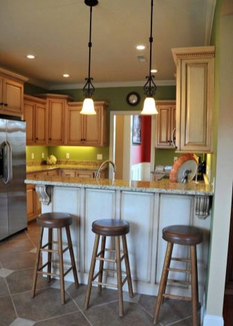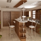 Bar counters can be of various shapes: rectangular, angular, semicircular, oval, etc. Which of them will flaunt in the room, depends only on the size of the kitchen, its design and taste preferences of the owner.