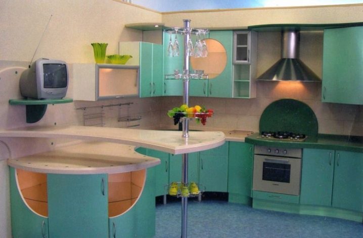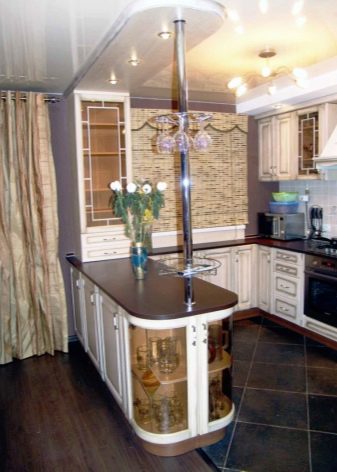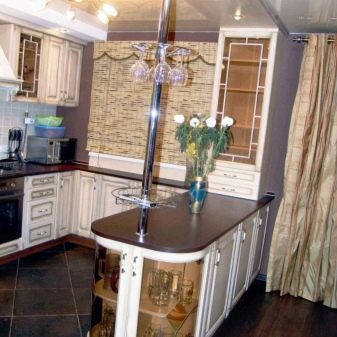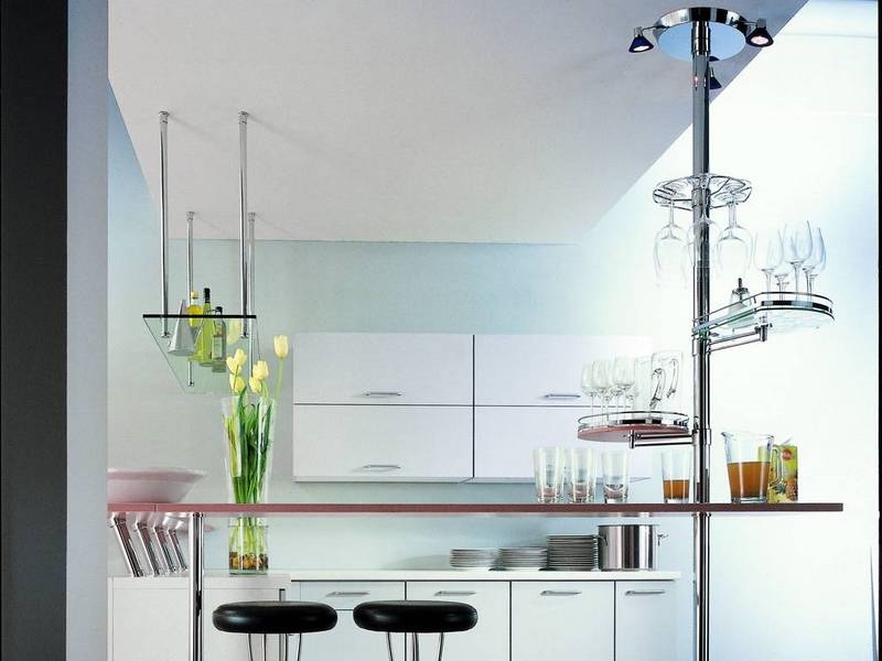 If various drawers and shelves are provided in the bar, then ideally they should be “smart shelves”, that is, to be useful, this is especially important for kitchens with a small area.