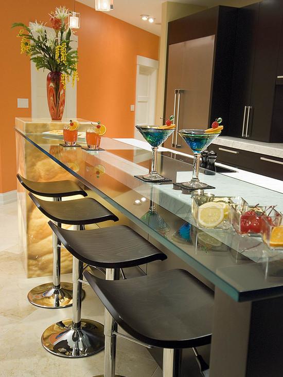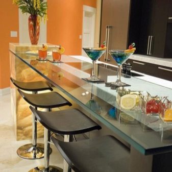 Materials for the manufacture of the bar are used very different. Their appearance depends on the overall style of the room and personal taste,preferences of the owners of the premises. Countertops can be made of wood, glass, metal, plastic, ceramics. There are no restrictions.