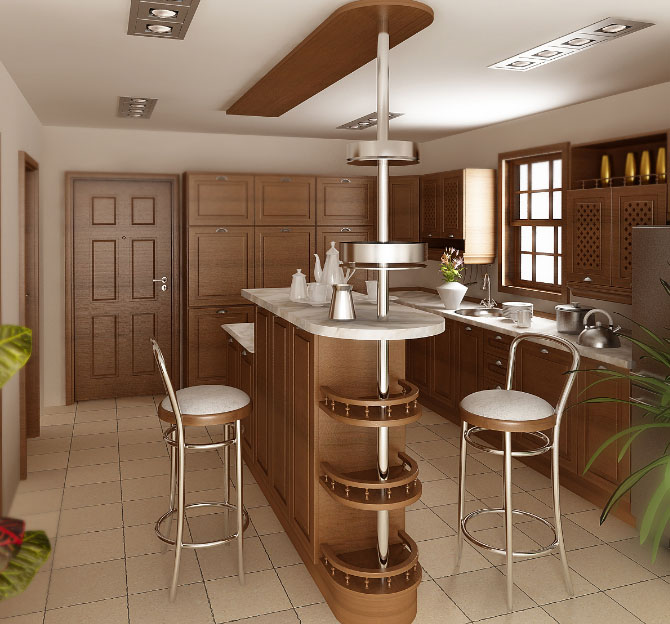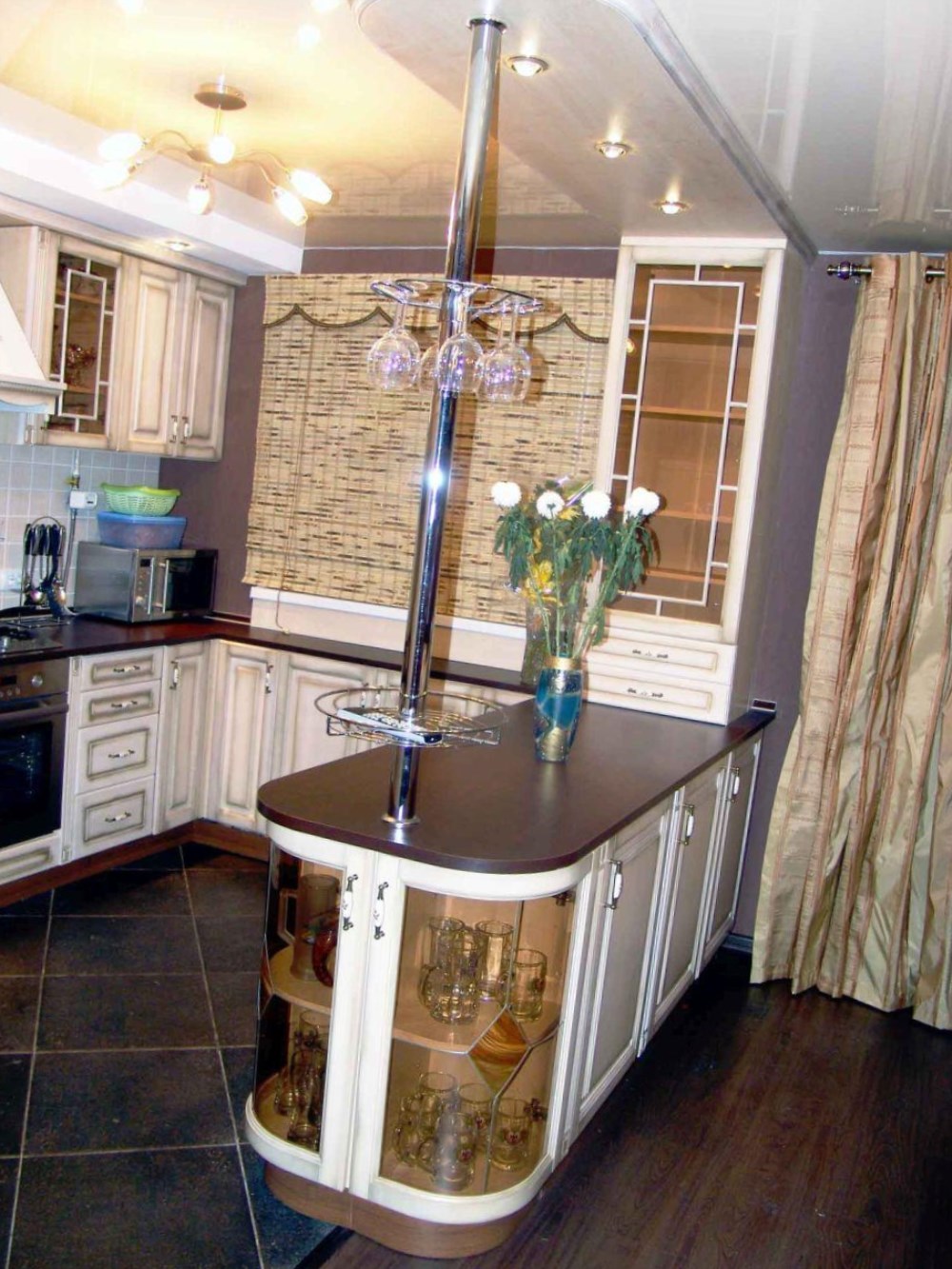 - If the kitchen will be a large bar, its internal space can be a great place to store kitchen utensils. In addition, it fit a small refrigerator.