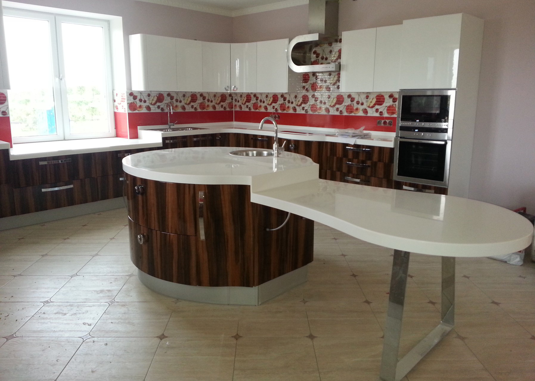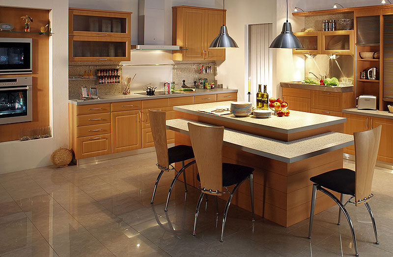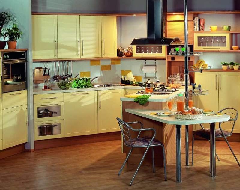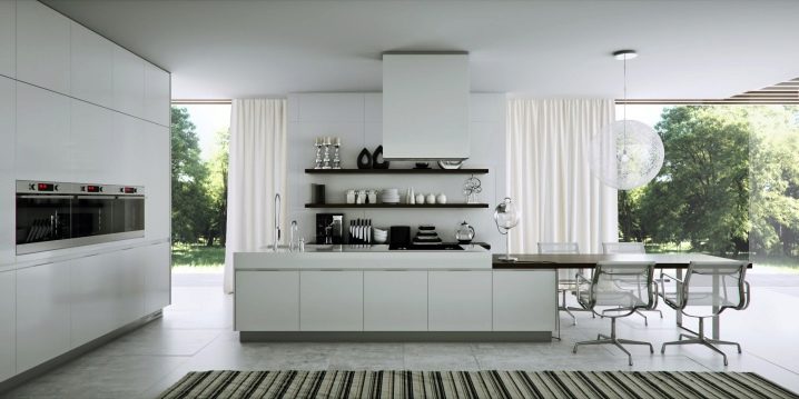 Feature island model lies in its size. It can be installed only in large spaces, in a small kitchen can make movement difficult. This type of rack is suitable for a whole dynasty or a person who likes to invite many friends to his house.