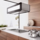 - Dominoes. A relatively new type of hood that hides in the worktop from prying eyes and is advanced only during cooking or with unpleasant odors in the kitchen. Very compact and convenient hood, but it costs a rather large amount of money compared to the rest and is only suitable for small rooms.