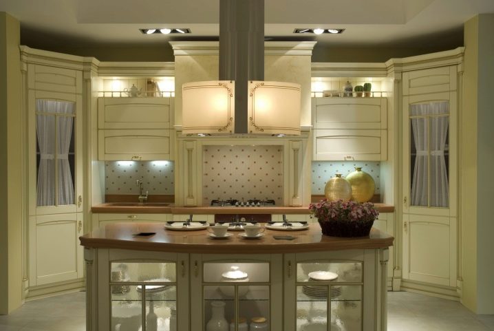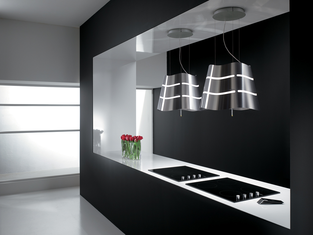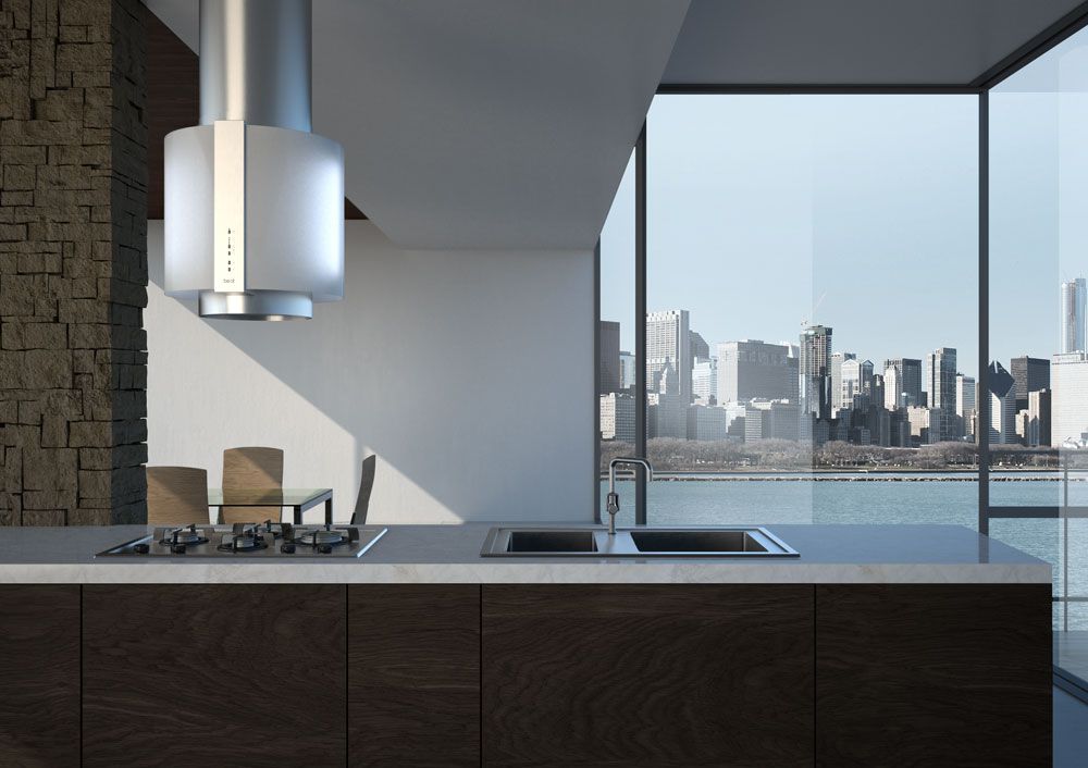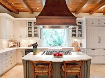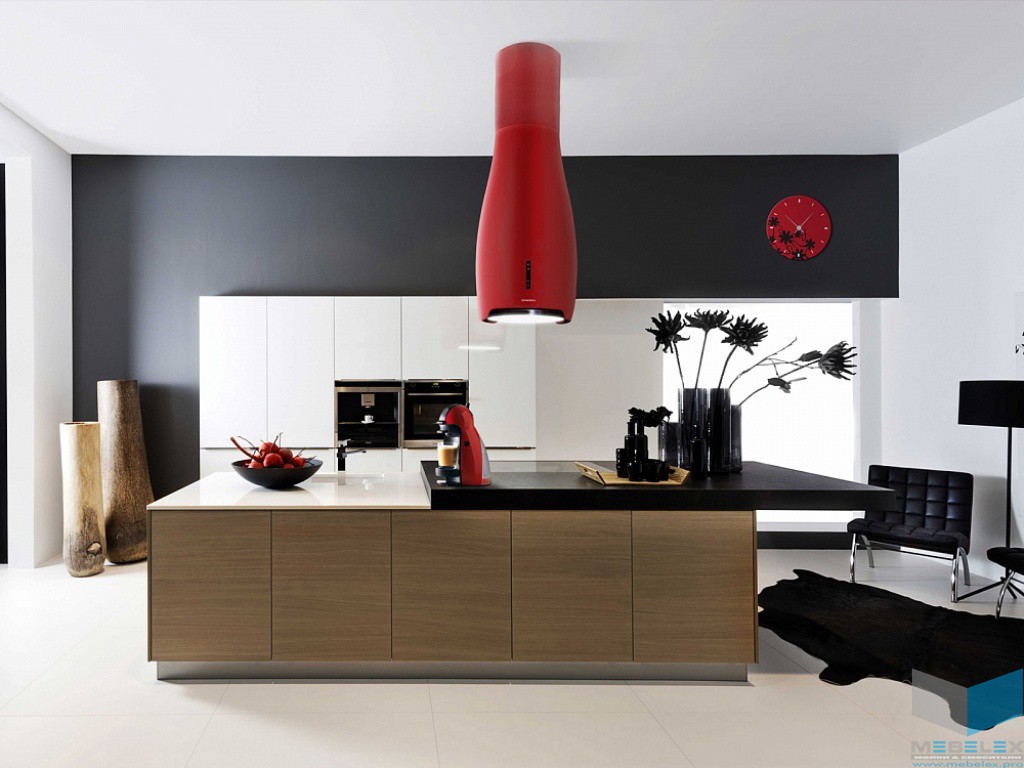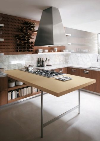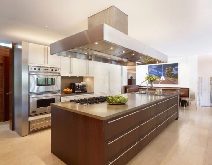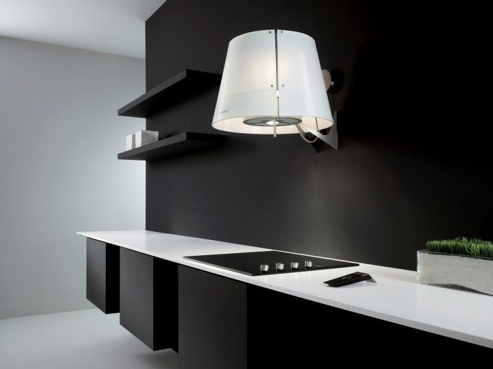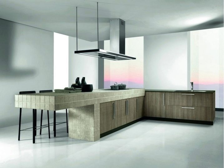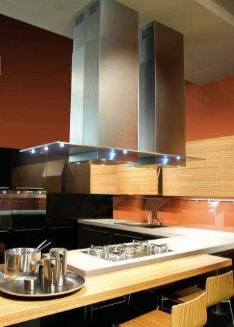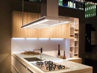- Island. One of the latest models of the hood, which is ideal for large rooms, such as a combined kitchen and living room. The hood has a stylish appearance and can visually separate the room areas.