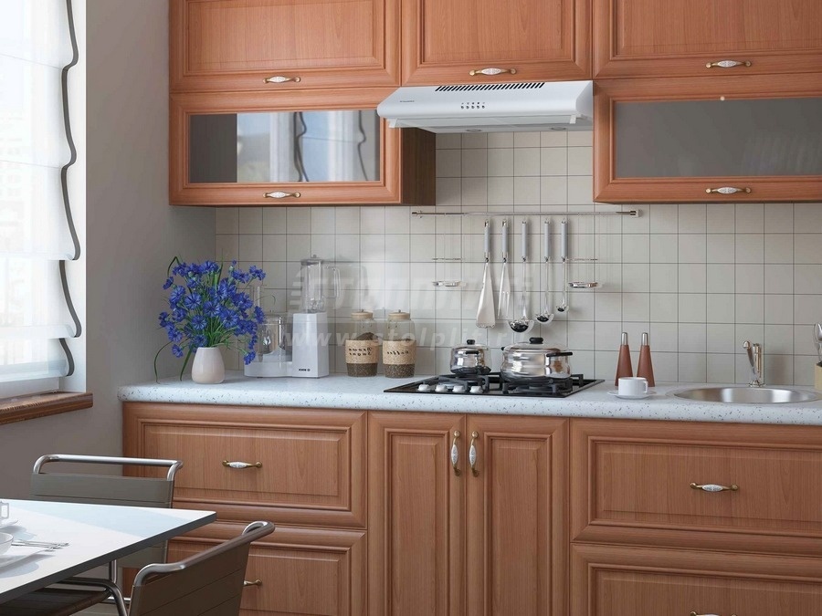 Suspended hood is inexpensive and at the same time has a beautiful appearance. The compact device is ideal for small spaces. In addition, do not fear for natural ventilation. Attachment will not interfere with air circulation.
