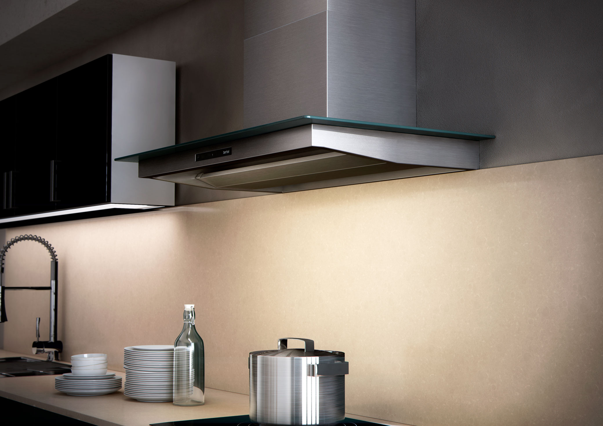 - Sensory. More modern and functional control, as opposed to push-button. Lightly pressing the panel includes one or another command for the hood. A household appliance with such a panel would be much more expensive than others.