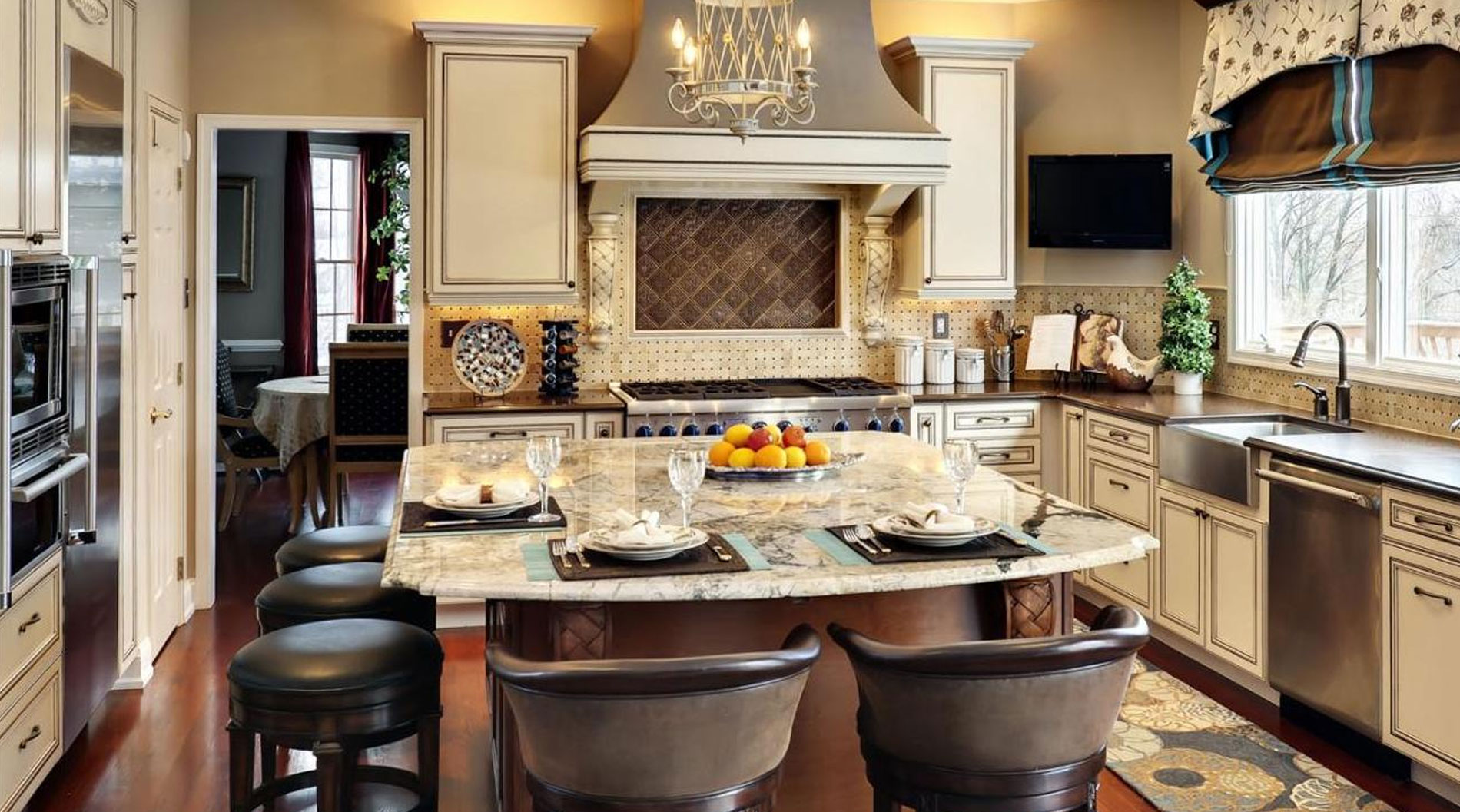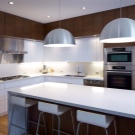 - ceiling hoods installed in the center of the kitchen, above the stove;