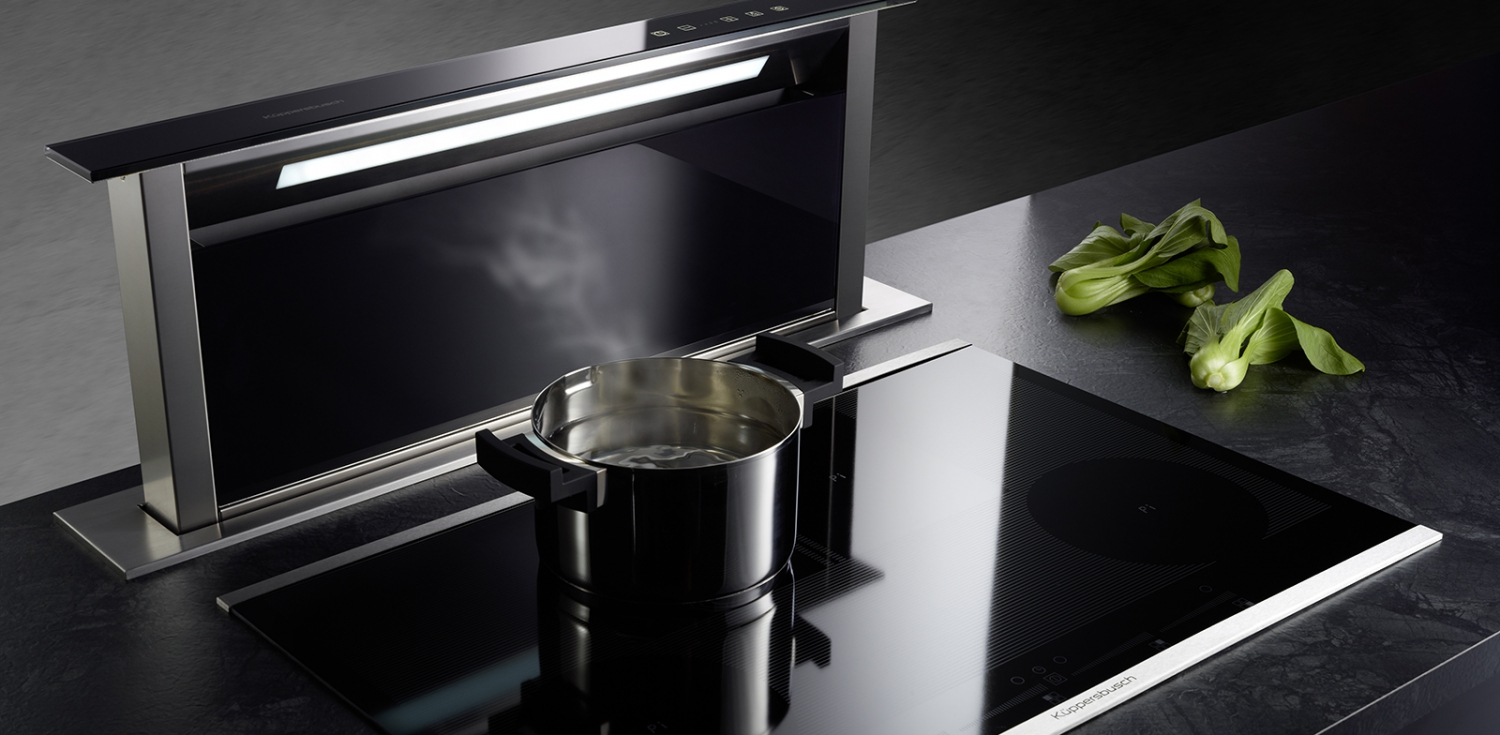 The innovations of kitchen equipment include types of hoods that are built right into the worktop with the ability to move out of it.Previously, it was known only about the corner kitchen hoods, ceiling, suspended, embedded ... but the kitchen hood in the countertop is really something new. But it turned out that such a solution to the issue is simply indispensable for a kitchen in which there are no wall cabinets, and there is no place for a regular hood.