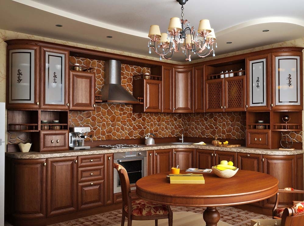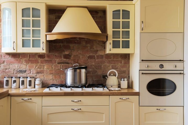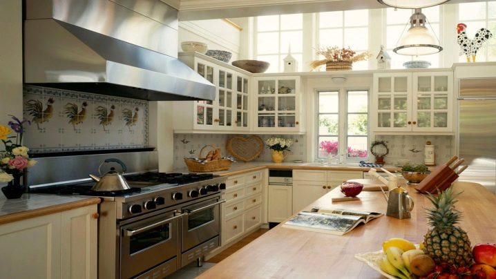 There are hoods and with combined surfaces of glass and steel. They will harmoniously fit into the kitchen of English, classic and retro style. Here it will be appropriate and glass washing.