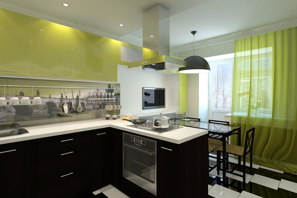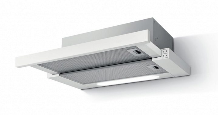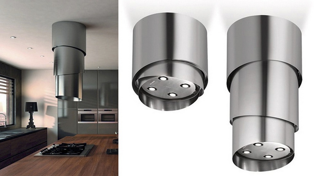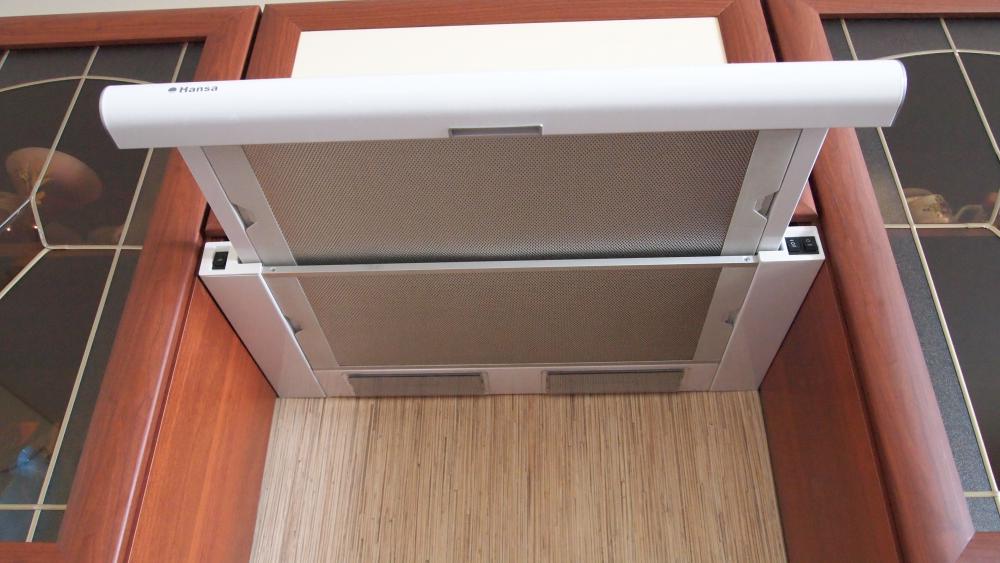 In contrast to the full-size structures, the telescopic hood does not select a part of its space from a small kitchen, because for the most part it is mounted in a hanging cabinet and it does not require much space. To start working the hood, the narrow exit panel can be easily extended.