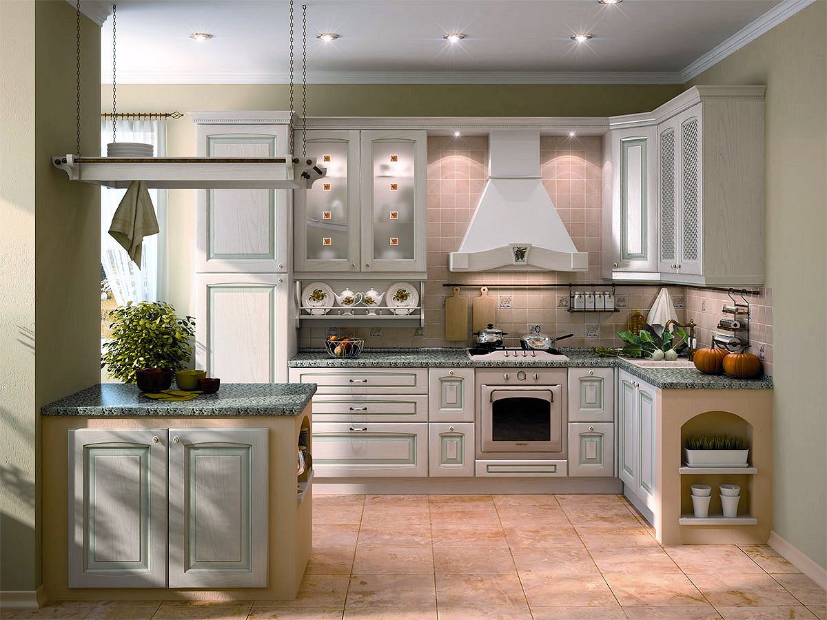 Not less interesting solution - Provence style hood. The kitchen is filled with an atmosphere of comfort and coziness. Hoods, as a rule, pastel shades, with smooth forms, with haze of metal elements, stylized antique, usually do not exhibit, this is a built-in type of hood.
