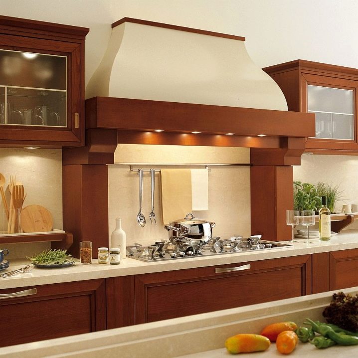 - hoods at high prices are usually made of expensive wood, they are equipped with powerful fans, numerous filters and are designed for additional options.