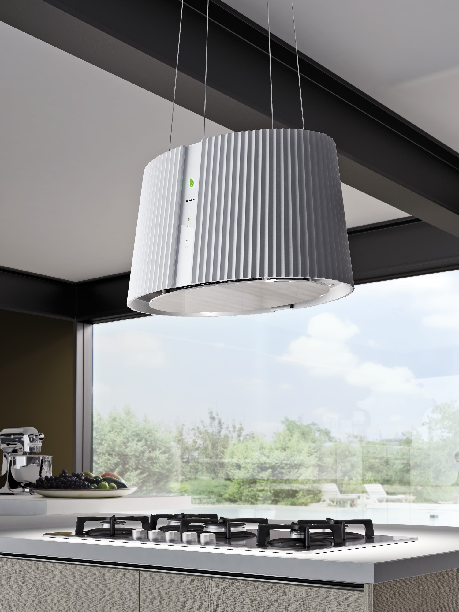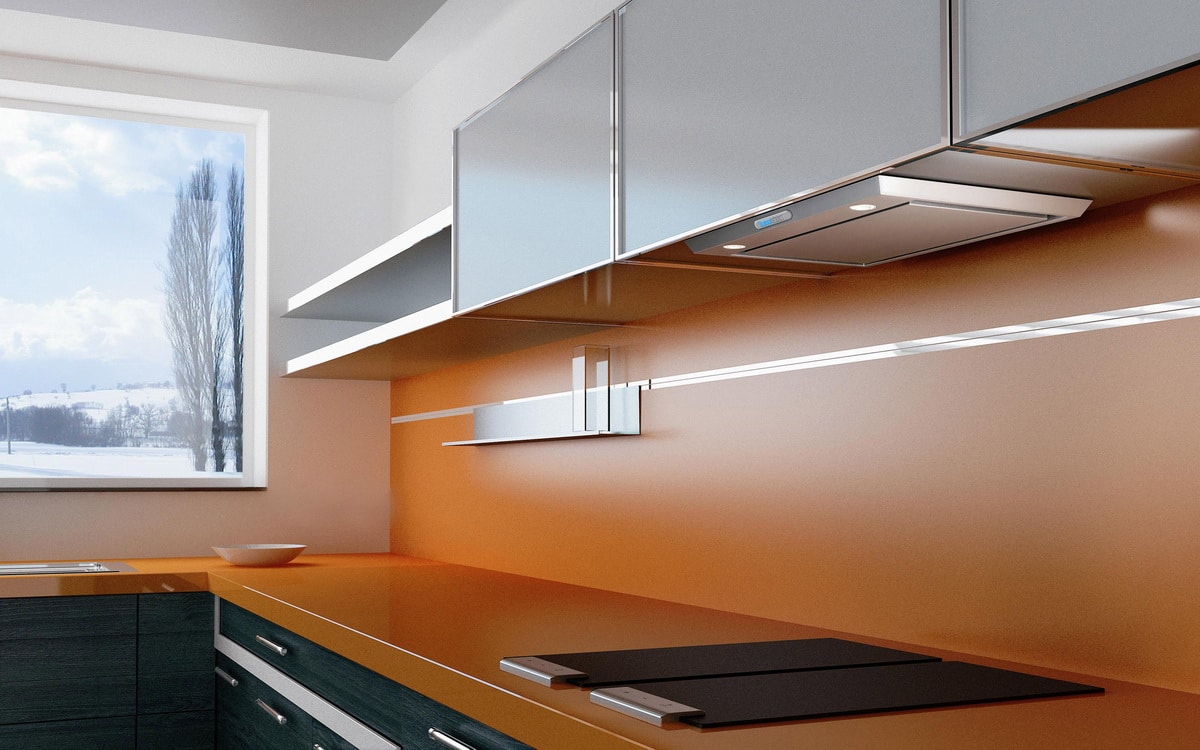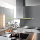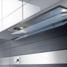 Integra - a device with a sliding slider panel, which expands the suction zone above the workplace in the kitchen, which speeds up and improves the process of air purification. This device, which is almost imperceptible externally, will also be as quiet as possible thanks to innovative Italian technologies that reduce noise and power consumption.