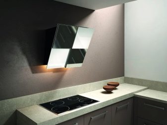 The corner hood is also multifunctional, almost silent, ergonomic, attractive in design and color solutions. In addition, in the interior, it often looks more interesting and original than the usual;