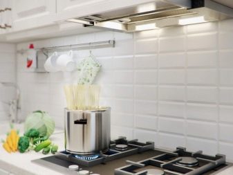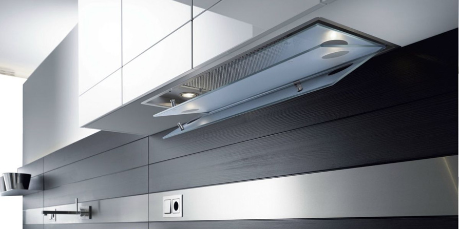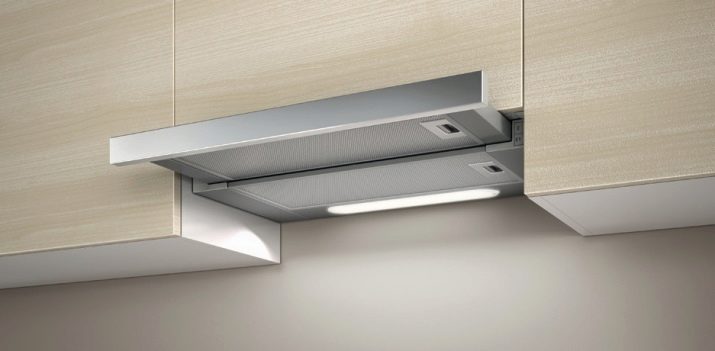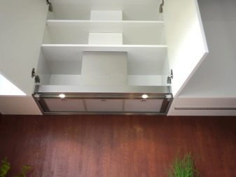 Option is also possible built in technology. It is mounted directly in the cabinet above the stove. Such models are equipped with a sliding panel, which expands the area of air intake above the working surface.