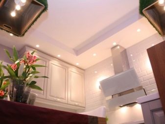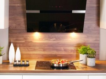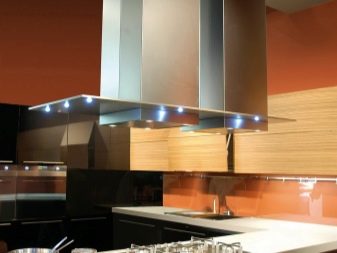 - Halogen lamps. They give a soft light over the cooking surface, which is necessary during cooking, and introduce a decorative element into the interior;