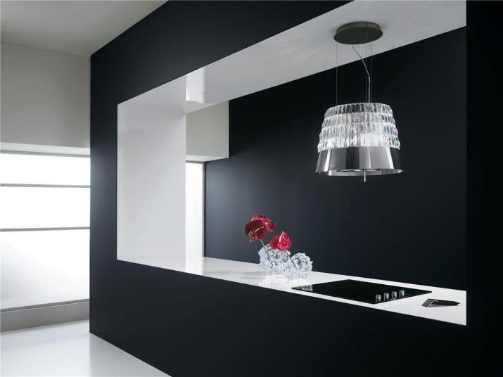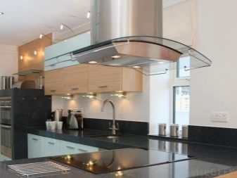 The third type is fireplace or dome hoods that are not attached to the wall, but to the ceiling and in their form resemble a dome.
