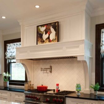 The design of kitchen appliances is developing in line with fashion trends, so that today the market is not limited to trapezoidal hoods or compact embedded devices.The most suitable interior model can be selected from devices in the style of loft, high-tech, vintage, unique design solutions. It is interesting to look stylized hoods, the surface of glass, a combination of different materials and decor.