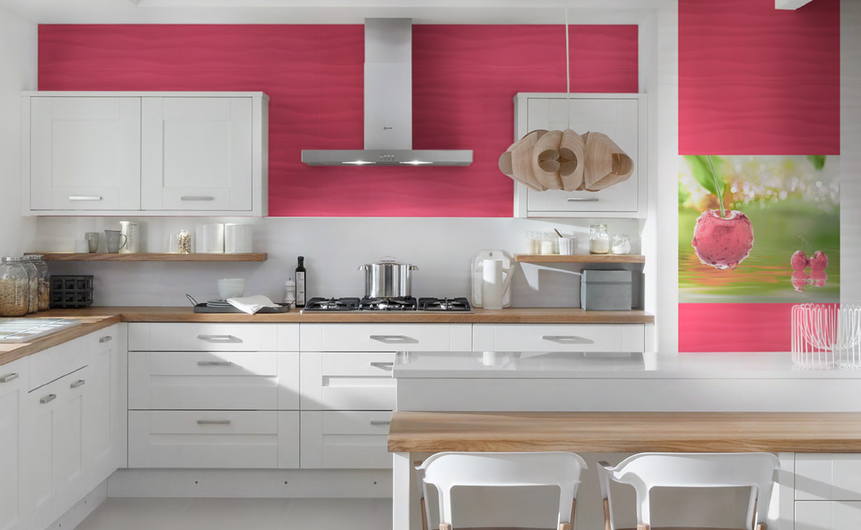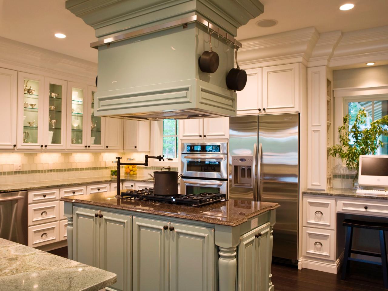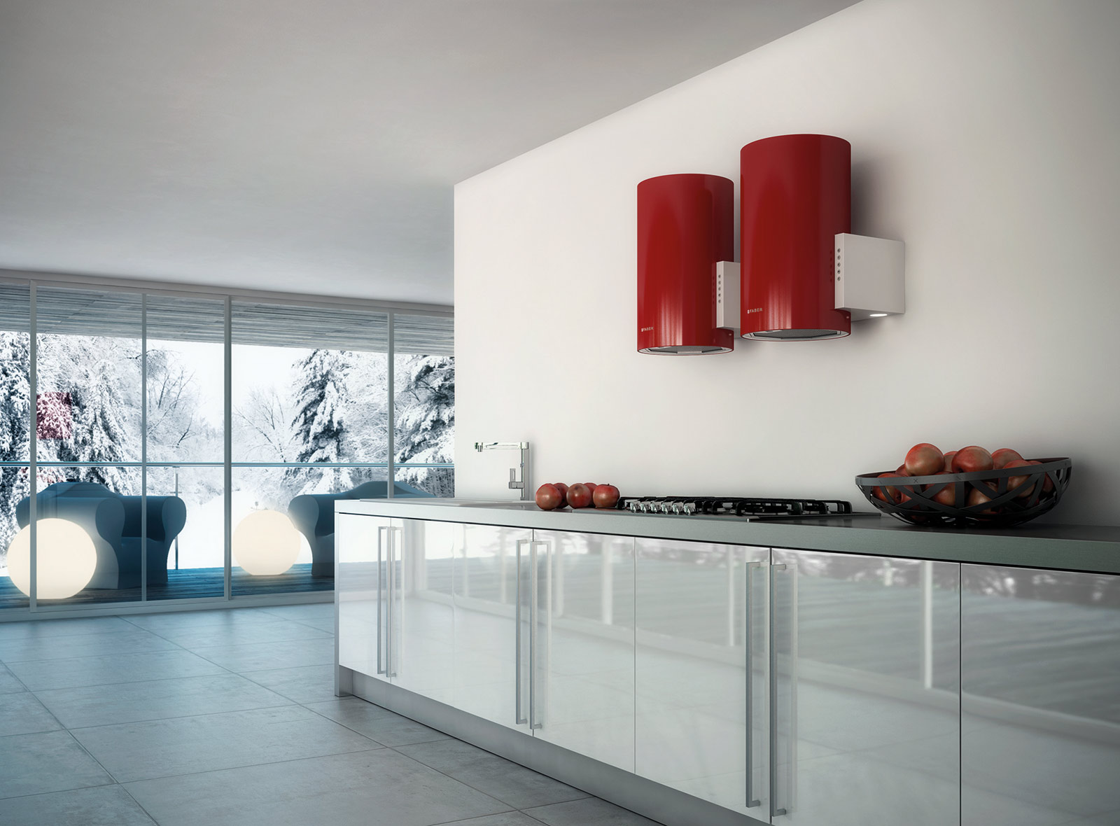 A special highlight of the kitchen add hoods of bright colors and original lighting.