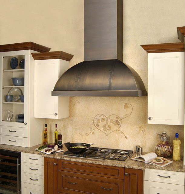 - The wall. Also called wall, fireplace or dome. It is mounted directly on the wall, does not require a large amount of space, therefore it is ideal for most kitchens with standard plate sizes - 50-60 cm.A variety of models allows you to choose the best option that suits the style of the whole kitchen and the necessary technical characteristics for each specific type of room;