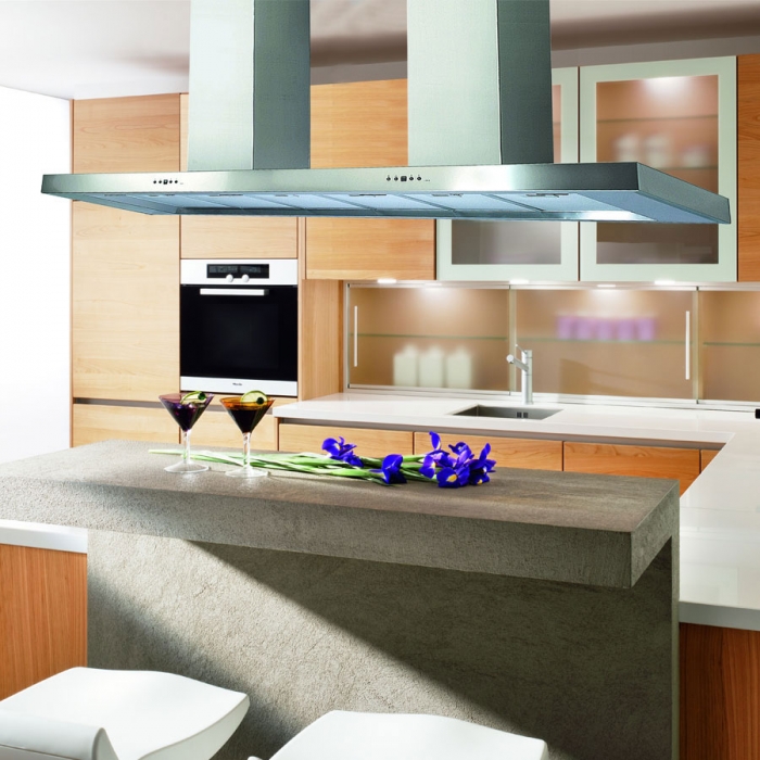 Exhaust panels of 120 and 150 cm - this is a professional elite equipment designed for kitchens, which are very fond of cooking.It combines the advantages of all previous models, but differs from them in size and higher price, respectively.