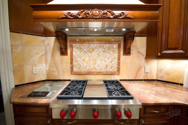 Popular hood, located above the hob "cap", from under which no odors and gases do not scatter in the kitchen.