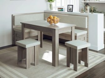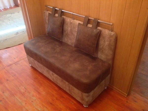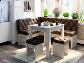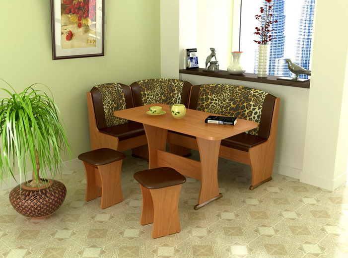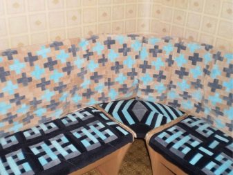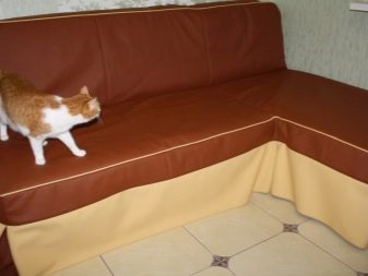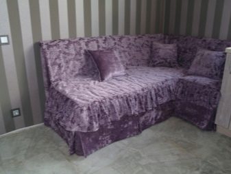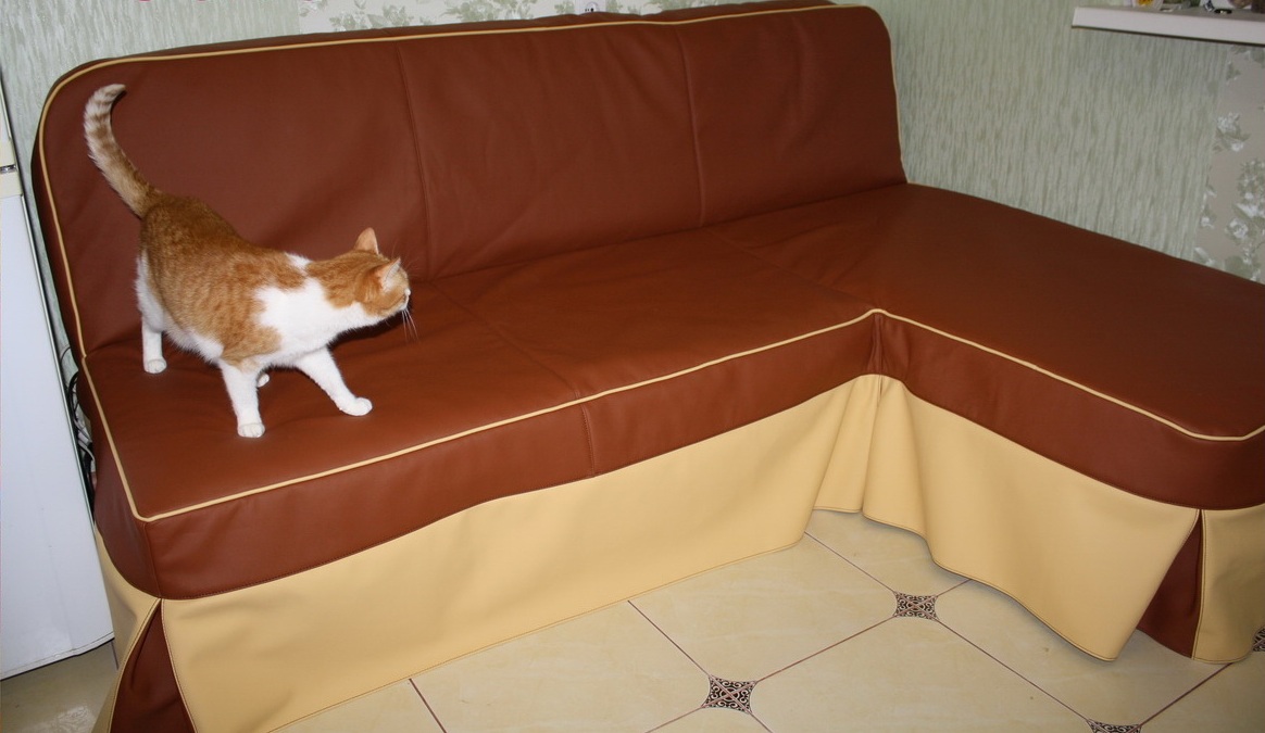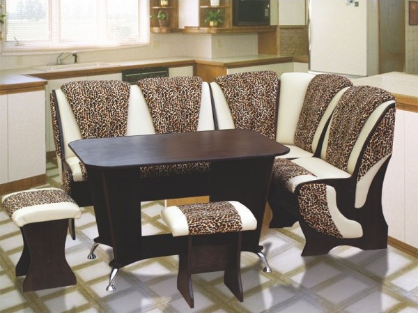 A fur case for a corner in the kitchen will look somewhat exotic. But he also has a place to be. It is especially good in winter. And although the children's audience is delighted with him, the use of fur in the whole area of the kitchen corner is not recommended. But he is very good in small patches. If a soft corner, for example, has metal elements that are in contact with the body sitting on it - back, armrests and other parts, then a fur cape will be very useful. This material can also be small seat cushions, which will also play a partly protective role.