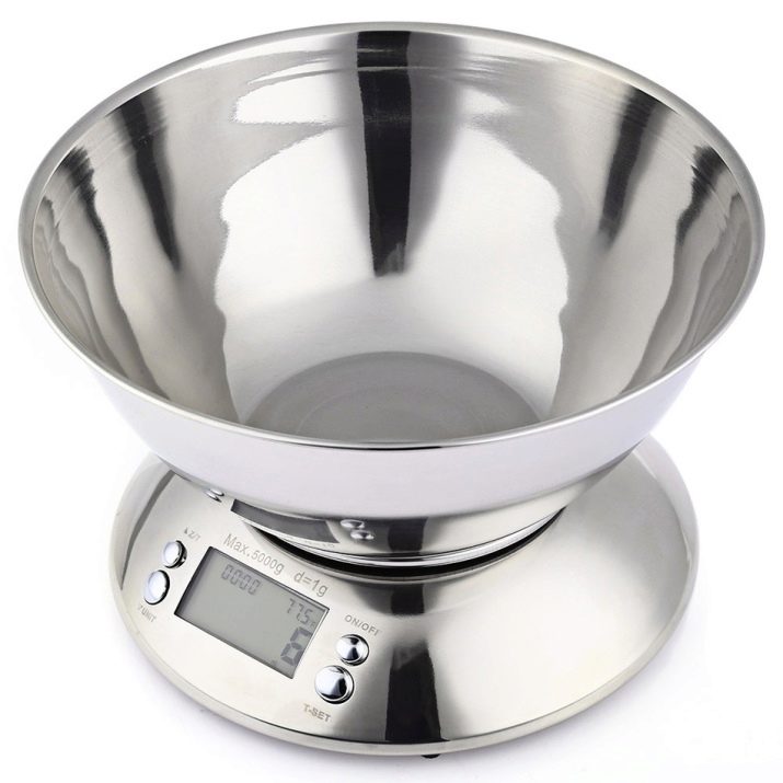 Two types of scales are available - with a bowl and a flat platform. The second option is convenient and compact. In them it is possible to weigh products in ware. Bowl models are practical and suitable for kneading dough exactly as the recipe does. The best option are devices whose capacity is not attached to the plateau. When choosing pay attention to the design and additional features.
