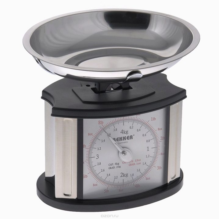 There are two types of scales and both have their own advantages and disadvantages.Electronic with a bowl have a display on which information about the mass of the product is displayed. It is convenient and practical. Electronic devices are compact, aesthetic, have many additional functions, provide accurate results with a minimum measurement error that allows you to weigh very light products.