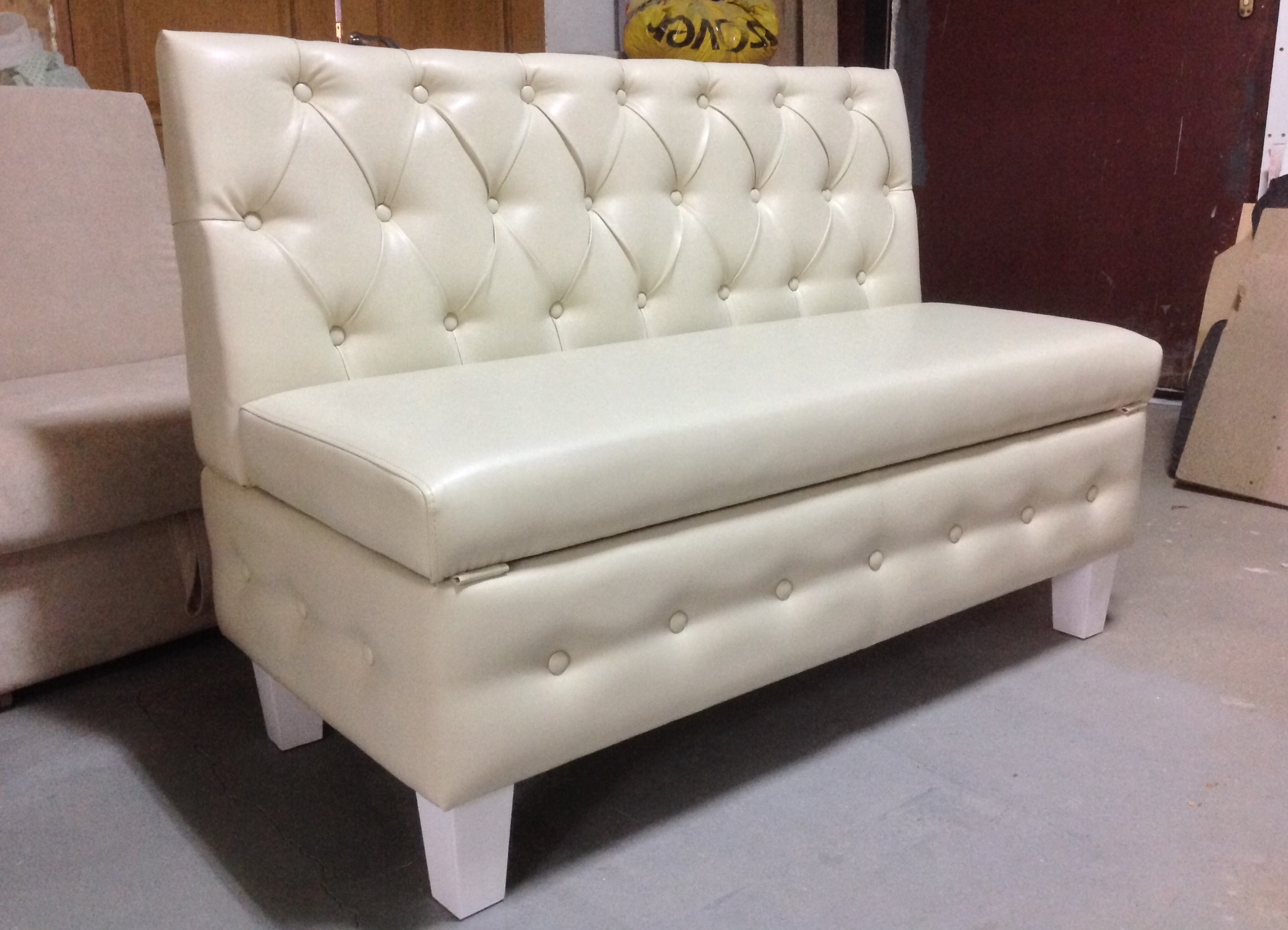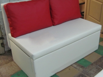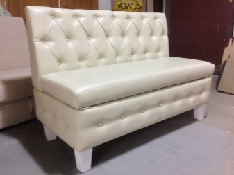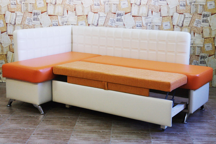 This piece of upholstered furniture will not only make the kitchen more cozy, but also help to create comfortable seats at the table during the day, and at night, if necessary, turn into a sleeping place. For ease of use inside, under the couch seat there is always space for storage of kitchen utensils.