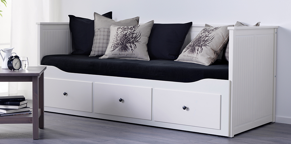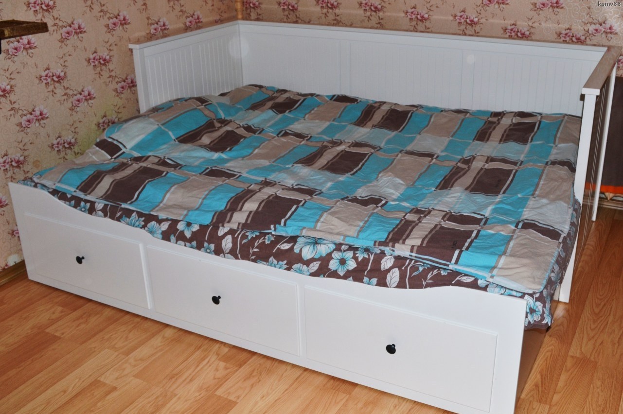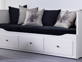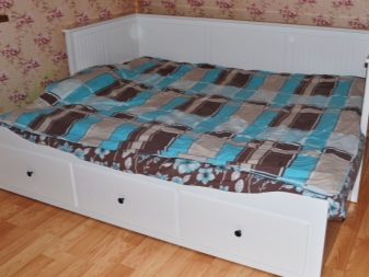 Among the huge number of variations there are cult models. The sliding couch "Hemnes" from Ikea was loved by many regular customers of this brand, and not by chance. There are many pleasant surprises. The overall size of 89x209 cm allows even a single person to use it for sleeping. And if necessary, the couch can be moved apart wide and turned into a magnificent double bed with a bed size of 200x168 cm.