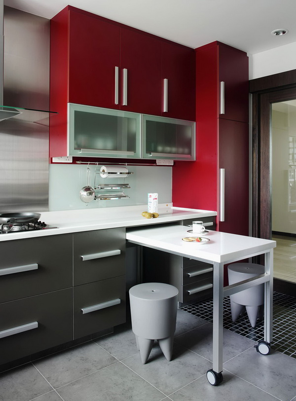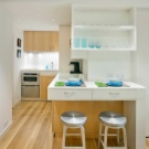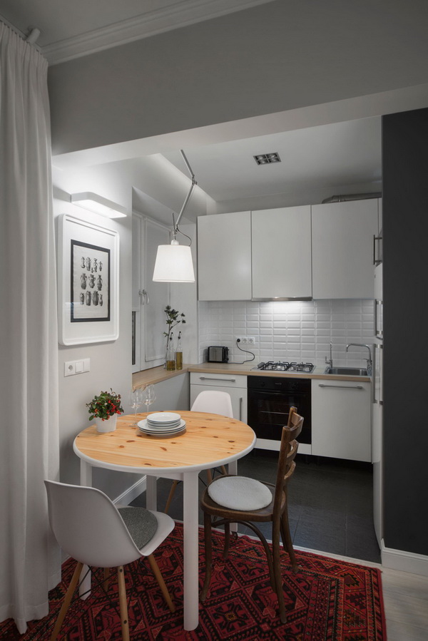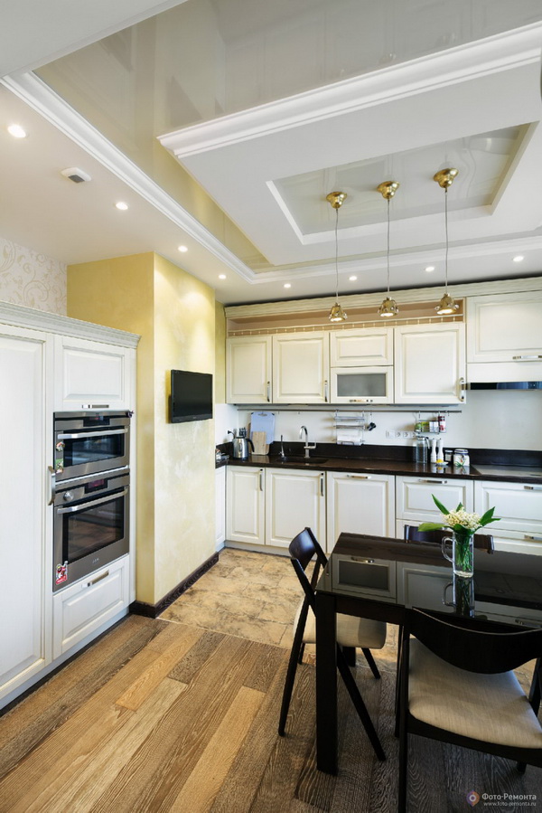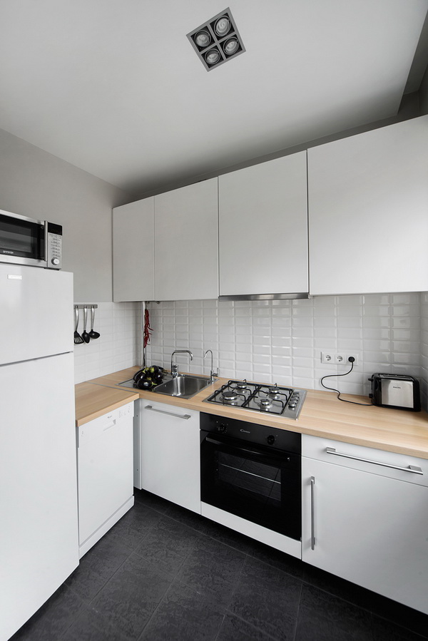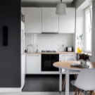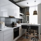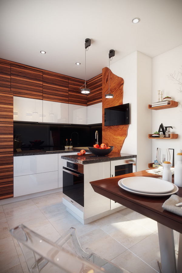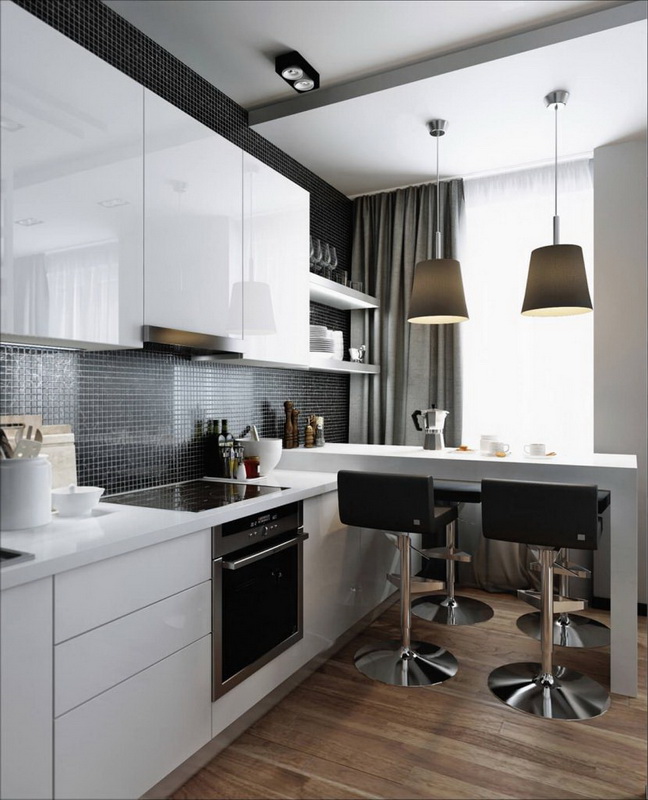 Pay attention to what sizes your kitchen turns out. If the area is small, then designers advise to buy corner furniture, so you can optimize the space and use it to the maximum. Additionally, in the cooking area there is a refrigerator, stove, cupboards, a dishwasher for washing dishes, and an oven. At the same time household appliances must be selected for the design of the apartment, it is desirable to select models that are compact enough so that all the necessary items are placed on a limited area.