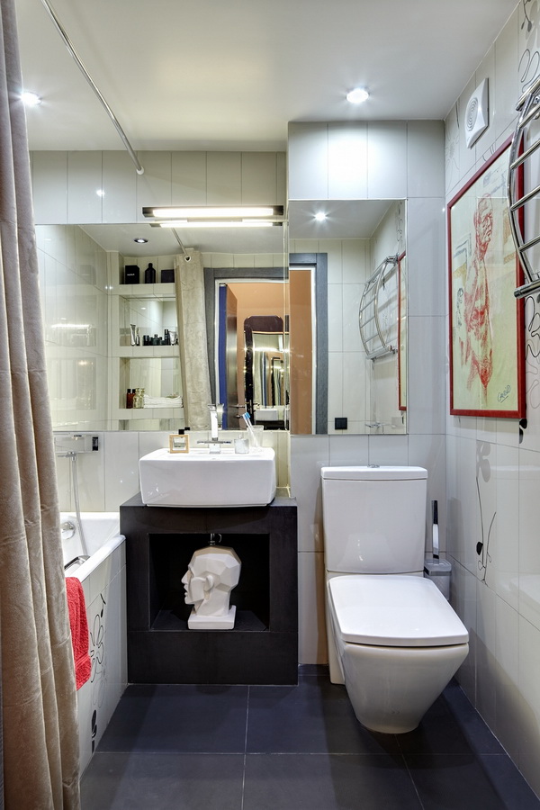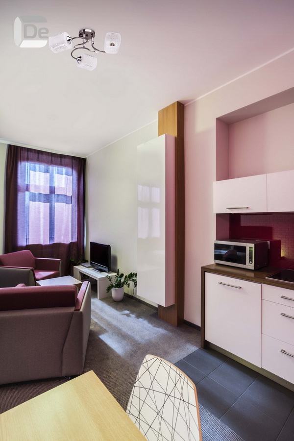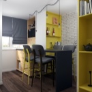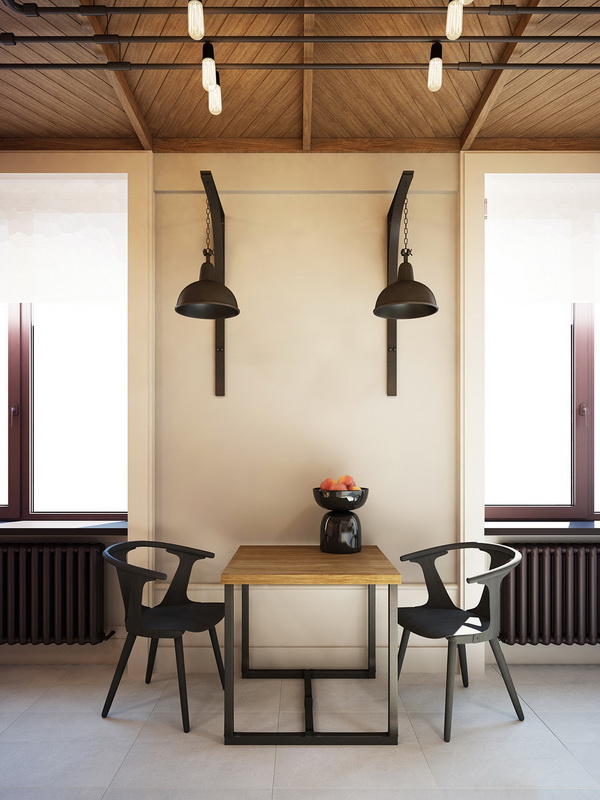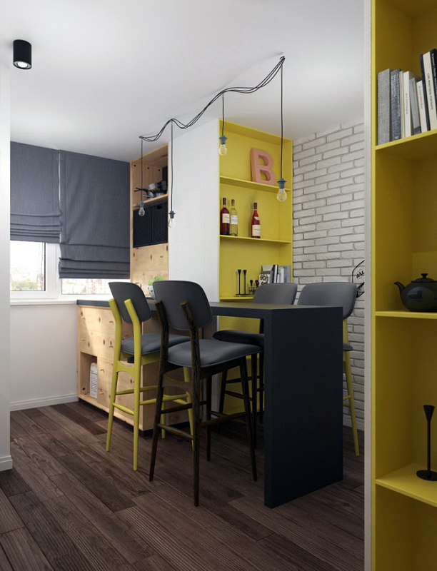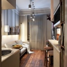 In addition, it is not recommended to use only dark colors in the design of an apartment-studio, no matter how much light would enter the apartment. First, the low color gamut does not tune in a positive way. Secondly, they visually steal the footage.And thirdly, the dark colors combine well only with the furniture of excellent wood.