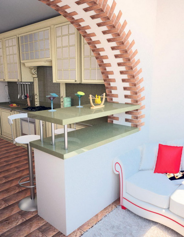 Additional design tricks and chips can be, for example, the use of beautiful arches instead of doors, which will additionally allow you to get a place in the apartment.