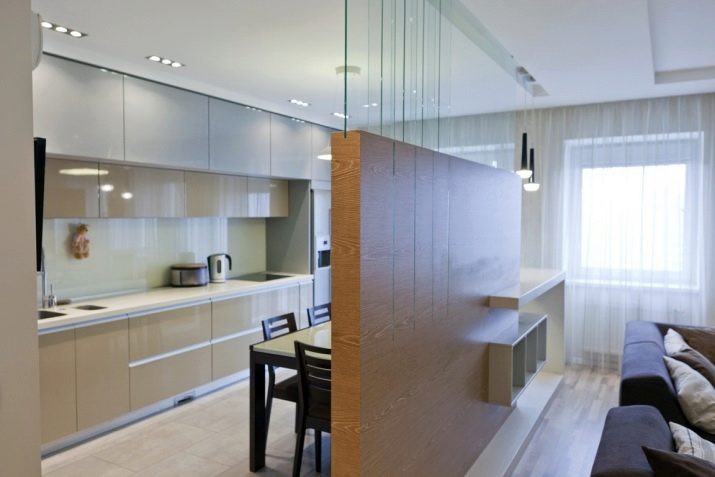 A prerequisite is the delimitation of the cooking zone from the sleep zone. Since the living room is quite small, it is recommended to make the most of the remaining space. In the presence of a balcony, it can also always find additional use, for example, to remove the partition and glaze it. It can accommodate a dining table, a small children's room, or even an office for work. Do not forget that when implementing such an idea, it is necessary to insulate the walls, because the batteries are likely to be built into the walls of the dwelling.