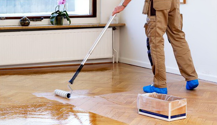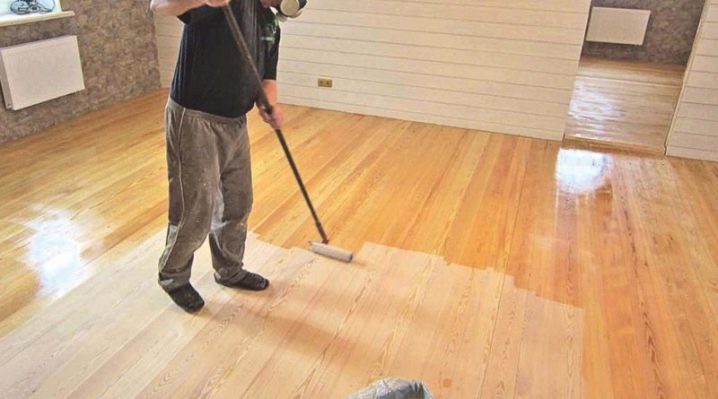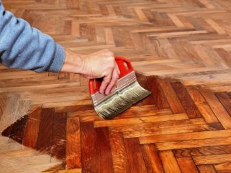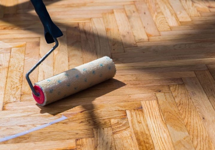 Surface, on which you are going to apply the parquet paintwork material, pre-primed. So, you can avoid the appearance of irregularities and defects, and the material you will need a smaller amount. For varnishing parquet, use a special two-component acrylic varnish. Due to its composition, it forms a more dense film that is resistant to various kinds of damage and scratches. The finish coat can be tinted and give the desired shade to the wooden floor.