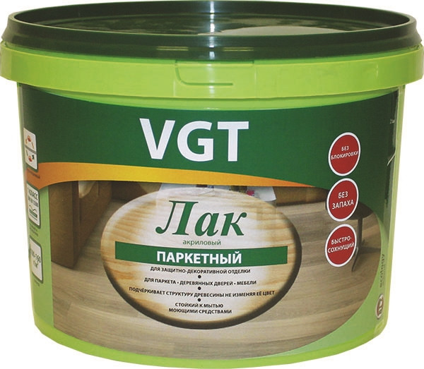 - VGT - a Russian company specializing in the production of varnishes, paints, enamels, pigments and other acrylic materials. The company has its own research center. In the building stores provided a wide range of products of this company.