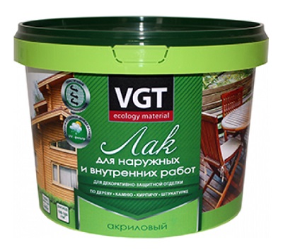 Good customer feedback is received by VGT products. Two plants have their own laboratory and are engaged in the production of a wide range of materials. VGT Varnish is designed for antiseptic surface treatment. Due to its composition, it penetrates deep inside the base, ensuring the safety of the surface. Lay down a thin layer in the form of an elastic film.