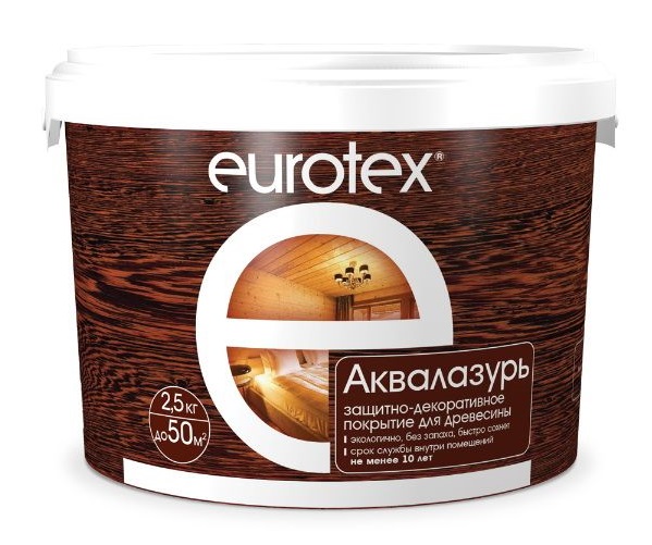 Acrylic varnish for wood Eurotex is a product of the Russian brand. It guarantees the protection of the array from various kinds of microorganisms, moisture and temperature fluctuations. These products can be used for outdoor and indoor use. Prepack paintwork in packs of 0.9, 2.5 and 9 kg. Acrylic varnish of the brand is economically consumed: 1 kg is enough for processing 20 square meters. m surface.