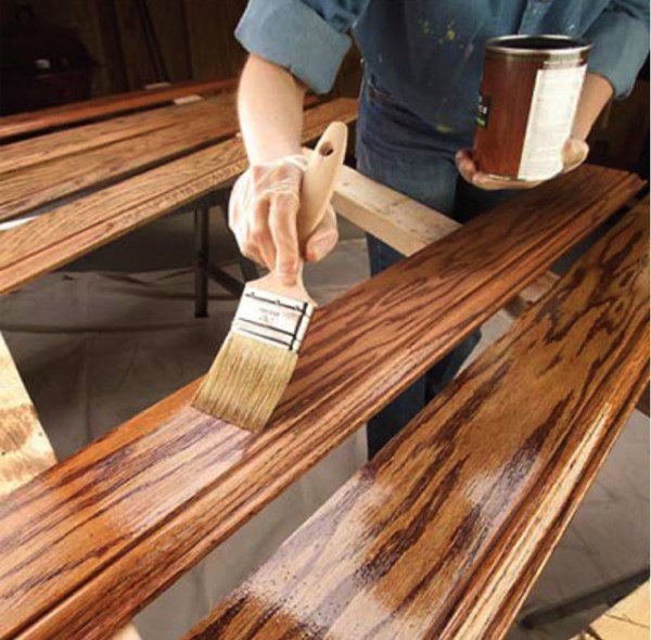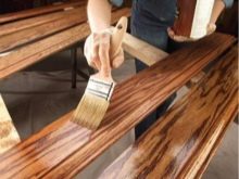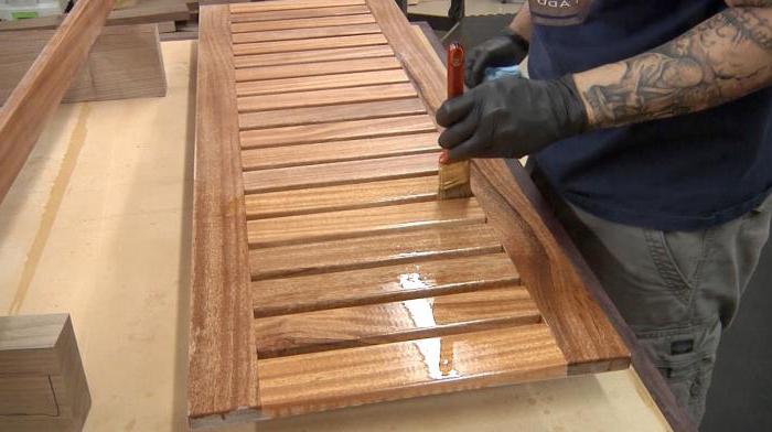 - The wood before treatment with varnish can be starved. The stain can give the tree the desired shade, as well as provide additional protection. Instead of the stain, you can use a two-component polyurethane varnish oil-based.