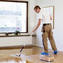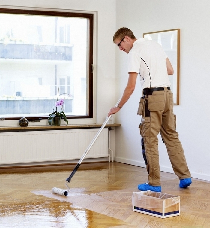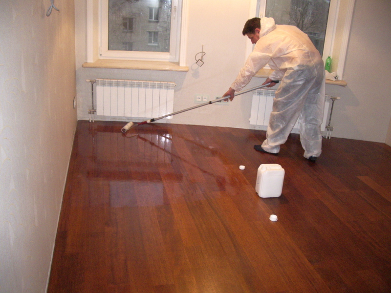 When treating the surface of the floor, applying the solution must start from the window and move towards the door.