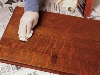 The mixture is distributed on a wooden surface in the direction of the fibers. The solution is applied in thin layers in an amount of not more than 8 pieces. The approximate time that it is necessary to give each previous layer to dry before applying the next one is 2 hours.