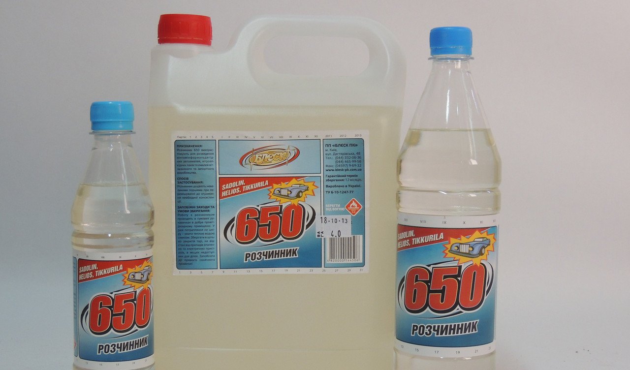 Solvent R-650 saturated composition is a combination of low-volatile components, among which are aromatic hydrocarbons, various esters, alcohol, butanol, xylene and other organic substances. Also, the P-650 is easily distinguished by its characteristic smell. Outwardly, it is a transparent homogeneous liquid, often colorless, but sometimes with a slight yellowish tinge, it does not show suspended particles.